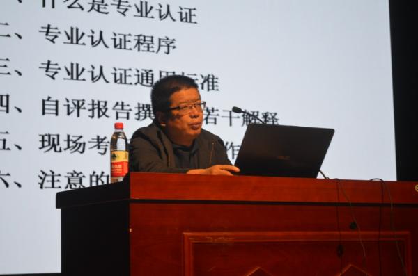 此次动员大会由电控学院副院长闫茂德老师主讲。闫院长首先以电控学院自动化专业发展历程为切入点,介绍了电控学院自动化专业的基本情况和近年来教学工作所取得的成绩。随后,闫院长介绍了工程教育认证的概念、自动化专业工程教育认证的程序及其对电控学院自动化专业发展的意义。
